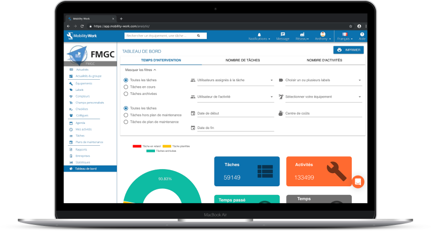 La GMAO Mobility Work offre plusieurs outils de suivi des tâches et activités des membres de votre réseau